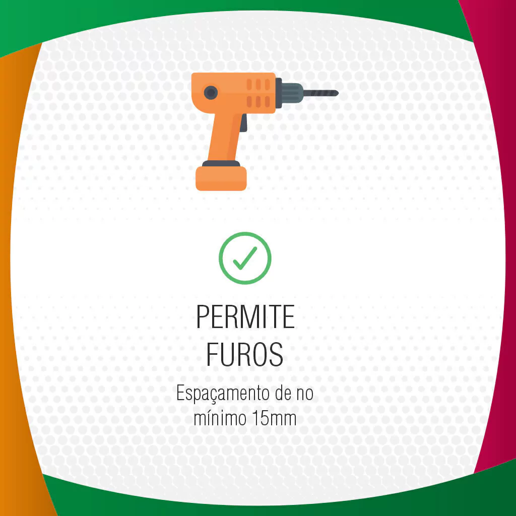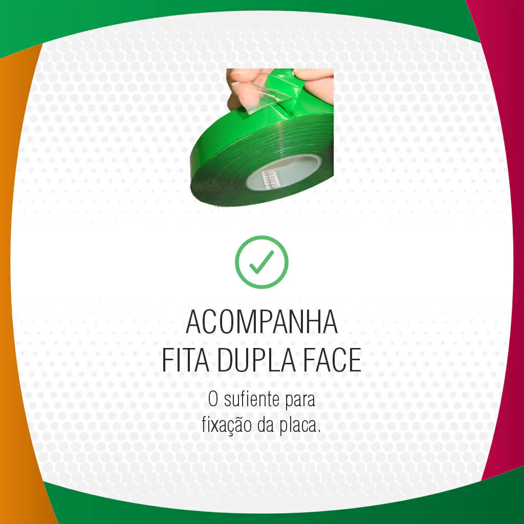 Acompanha fita dupla-face para aplicação. Caso seja necessária a fixação com parafusos, furos poderão ser feitos sem dificuldades (não acompanha buchas, arruelas e parafusos).
